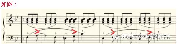 第三行,主旋律倒置到左手,左手弹奏时一样注意切分。