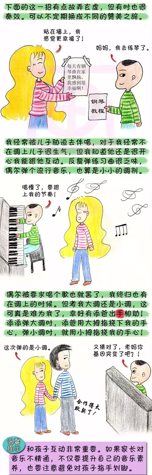 几张漫画告诉你辅导孩子学钢琴的巧妙方法,太经典了!